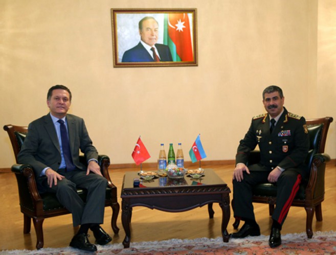 Baku, December 4, AzerTAc Azerbaijani Defense Minister, Colonel-General Zakir Hasanov met with the Turkish ambassador to the country İsmayıl Alper Coşkun. The discussions revolved around the actions jointly implemented, the importance of bilateral military cooperation, the military-political situation in region, the necessity of settlement of the Armenia-Azerbaijan, Nagorno Karabakh conflict for region. The sides underlined the importance of organizing reciprocal visits of the representatives of the armed forces of both countries, joint trainings on military-technical education and strengthening of cooperation in the coming years. The Minister and Ambassador had comprehensive exchange of views on the prospects of all-sided relations. Military attaché of the Armed Forces of the Republic of Turkey in Azerbaijan, colonel-major Hasan Nevzat Taşdeler was present at the meeting.
