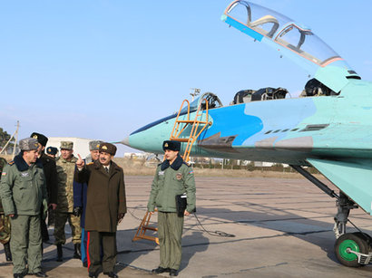 Baku, Azerbaijan, Jan. 24 Trend: Azerbaijani Defense Minister, Colonel General Zakir Hasanov visited a military unit of the air forces on Friday. The minister toured the runways, got acquainted with the combat readiness of aircrafts and conditions at the military camp, according to the Defense Ministry's official website. A group of servicemen were also awarded medals and prizes. The defense minister gave instructions to more rapidly and effectively execute combat missions in line with the measures on protection from air strikes. Translated by E.A. Edited by C.N. Follow us on Twitter @TRENDNewsAgency