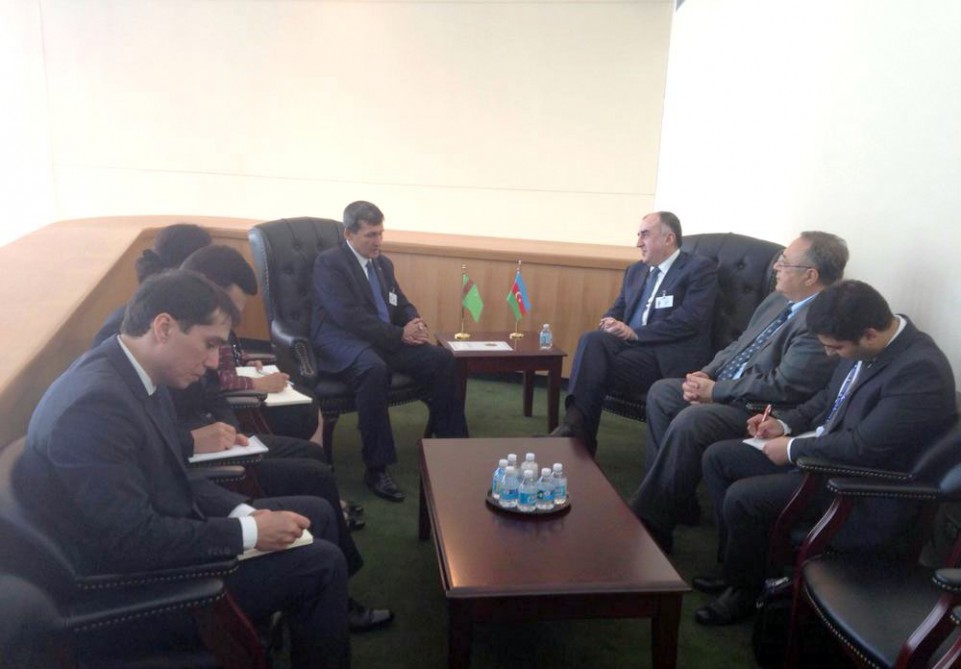 Baku, September 22, AZERTAC Azerbaijani Foreign Minister Elmar Mammadyarov has met Deputy Chairman of the Cabinet of Ministers, Minister of Foreign Affairs of Turkmenistan Rashid Meredov on the sidelines of the 71st Session of the UN General Assembly in New York. They discussed the current state of and prospects for the cooperation between the two countries, noting there are good opportunities for expanding the cooperation in energy, transport, cultural and humanitarian spheres. The ministers noted that the Azerbaijan-Turkmenistan-Turkey trilateral cooperation format contributes to the further development of the ties, as well as discussed the agenda of the upcoming meetings of energy and foreign ministers in the trilateral format in this regard.