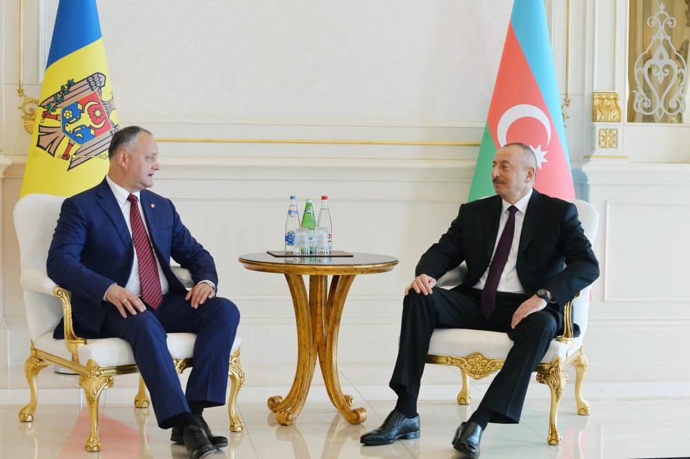 Following the official welcome ceremony, President of the Republic of Azerbaijan Ilham Aliyev and President of the Republic of Moldova Igor Dodon held a one-on-one meeting June 22.