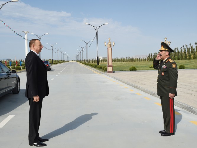 Minister of Defense, Colonel-General Zakir Hasanov reported to Supreme Commander-in-Chief, President Ilham Aliyev, who then viewed the general layout of the base.