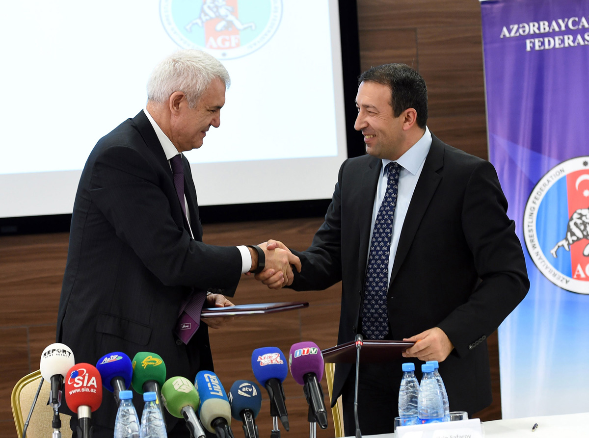 The MoU was signed at the Baku 2015 headquarters by Namiq Aliyev, First Vice-President of the Azerbaijan Wrestling Federation and Board Member of United World Wrestling, and Elchin Safarov, Corporate Director of the Baku 2015 European Games.