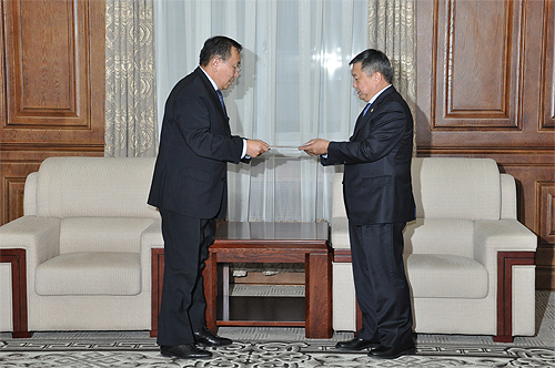 Ulaanbaatar, Mongolia /MONTSAME/ A head of the Presidential Office P.Tsagaan presented draft amendments to the laws on the State Great Khural and on a regime of parliamentary session to the Speaker Z.Enkhbold on October 26.