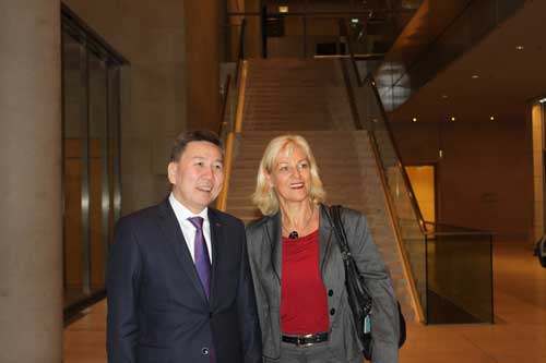 He shared views with her on the bilateral inter-parliamentary cooperation and spoke about results of the 2012 parliamentary election, activities of the Mongolia-Germany parliamentary group at the newly formed parliament, and then conveyed a greeting of this group's head to Ms Enkelmann.