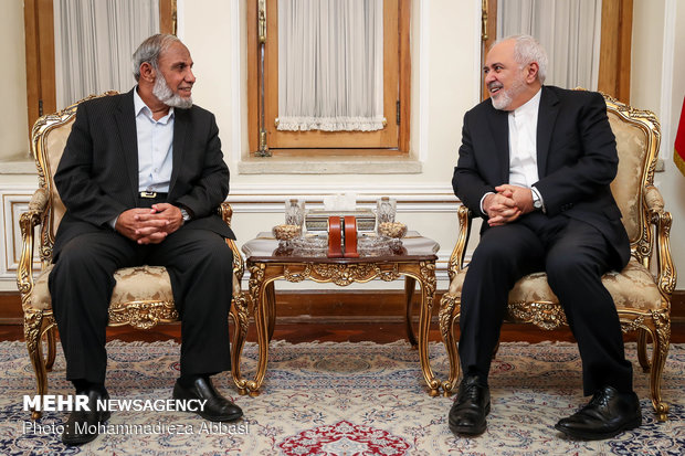 Foreign Minister Mohammad Javad Zarif met and held talks with a visiting Palestinian delegation led by the head of Hamas' parliamentary bloc, Mahmoud al-Zahar, on Sunday.