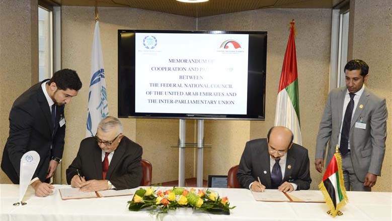 Geneva: The Federal National Council (FNC) and the Inter-Parliamentary Union yesterday signed an agreement of cooperation and partnership to promote parliamentary cooperation relations between the two sides, the first such agreement to be signed by the Union in its 125 year history. The agreement is considered as yet another significant milestone to add to the UAE's record of achievements, and a demonstration of how the UAE enjoys a good reputation and the confidence of the international community. The agreement was signed by Mohammed Ahmed Al Murr, Speaker of Federal National Council (FNC) and Abdul Wahid Radi, President of the Inter-Parliamentary Union, on the sidelines of the UAE Parliamentary Division of FNC IPU meetings being held in Geneva. On the occasion, Al Murr delivered a speech in which he stressed the importance of the partnership agreement with the Inter-Parliamentary Union because it will bring the mutual benefit of the potential and capabilities of each side in parliamentary diplomacy to contribute to strengthening the role of parliamentarians at the international level. Al Murr added that the agreement is a sign of appreciation by the Inter-Parliamentary Union of the role of parliamentary diplomacy of the FNC, which has achieved wide openness at various parliaments around the world according to the specific principles of mutual respect, dialogue, tolerance and peace, and strengths the bonds of parliamentary cooperation at the international level. Al Murr pointed out that the General-Secretariat of the FNC offered its advanced experience before the Inter- Parliamentary Union three years ago, which was wildly accepted, stressing that the partnership agreement will enhance the areas of parliamentary cooperation through joint programmes and events aimed to spread parliamentary culture and will contribute to consolidating parliamentary knowledge as a fundamental mechanism of action for stability and peace within the societies of the world. Al Murr said that the relations between the UAE and the Inter- Parliamentary Union began in 1977 a short time after its inception, and since then the UAE, represented by the FNC, has played an important role in the Union, participating effectively in all its activities. He added that the UAE has been able to prove its efficiency and has occupied a major role in IPU's actions through its membership of the Executive Committee. The partnership agreement stipulated that the IPU as the oldest multilateral political organisation, the Global Parliamentary Organisation, which includes representatives of the peoples of the world since 1889 and the FNC as a representative of the legislative authority in the UAE work to enhance the ties of cooperation and coordination with the aim of supporting parliamentary work and its development. Under the agreement, the Inter-Parliamentary Union is committed to participate effectively with the FNC in its parliamentary activities and events and to provide the necessary technical and advisory support to ensure success for the programmes, events and activities of the Council and to participate with the Council in joint parliamentary programmes to ensure the dissemination of culture and the development of parliamentary work mechanisms both nationally and internationally, as well as issuing parliamentary publications that promote and strengthen the dissemination of parliamentary knowledge and tools and mechanisms of parliamentary work. Under the terms of the agreement, the IPU and FNC agreed on the exchange of books and publications issued by them and the exchange of views on a regular basis in various matters of mutual interest between the two sides, as well as mutual respect for the privacy of each party, and through the exercise of a joint parliamentary activities with a third party are subject to the provisions of the agreement and both sides are also committed to the rights of the intellectual property rights owned by the other party. The agreement will be effective from the day after the signing for four years and shall be automatically renewed unless one party notifies the other with its desire for non-renewal at least six months before the end of its term. Furthermore, in the event of non-renewal of the agreement, the work continues between the FNC and IPU to carry out existing joint programmes in accordance with the provisions of the memorandum until the agreement expires. – Emirates News Agency, WAM