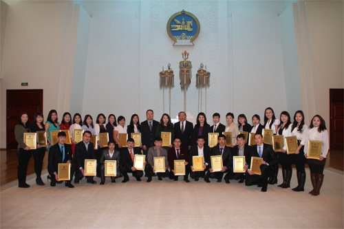 A head of the Presidential Office P.Tsagaan has granted the scholarship certificates to the students in the State House. The scholarships went to students selected from national universities and institutes such as the Mongolian State University, the University of Agriculture, the University of Health Sciences, the Mongolian University of Science and Technology, the Institute of Finance and Economics, the “Ikh Zasag” university and the “Olympic” institute.