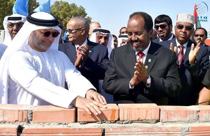 ABU DHABI, 2nd November, 2015 (WAM) -- President of the Federal Republic of Somalia, Hassan Sheikh Mahmoud, and Dr. Anwar bin Mohammed Gargash, Minister of State for Foreign Affairs, have laid the foundation stone of the new Somali Embassy building at the Embassies' quarter in the capital, Abu Dhabi.