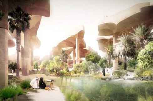 Abu Dhabi (WAM): As part of the plan to develop outdoor public space, Abu Dhabi is to have a futuristic covered garden under a canopy with the appearance of cracked desert land from above which will provide partial shade to the plants below.