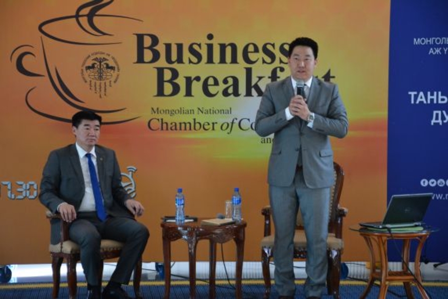 Today, the minister attended “Business breakfast” organized by Mongolian National Chamber of Commerce and Industry, sharing his views with businessmen on legal environment of businesses and pressing issues.