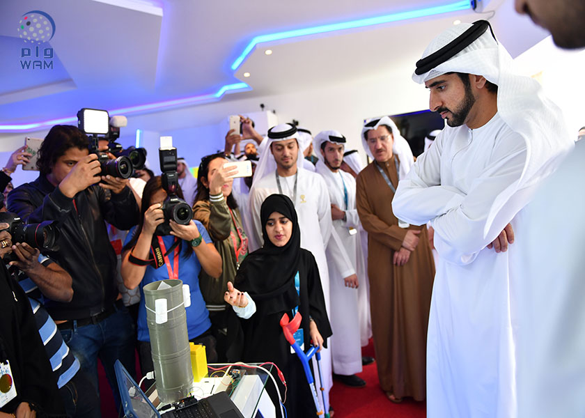 Sheikh Hamdan was briefed on a number of hi tech projects presented by the participating teams, who provide practical and innovative solutions in economy, humanitarian and scientific research areas.
