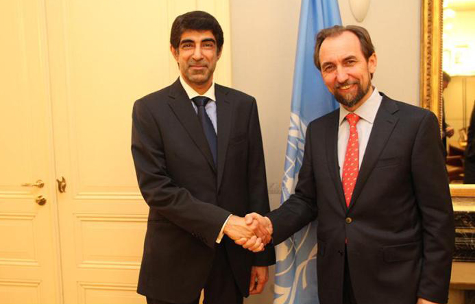 GENEVA, 18th January 2015 (WAM): Dr. Hanif Al Qassim, Chairman of the Geneva Centre for Human Rights Advancement and Global Dialogue, has met His Royal Highness Prince Zeid Ra'ad Al-Hussein, United Nations High Commissioner for Human Rights.