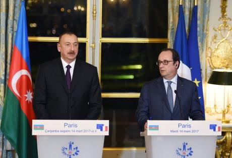 “First of all, Mr. President, I would like to express my gratitude for your invitation, the hospitality extended to me and the delegation,” Ilham Aliyev said to Francois Hollande. “I am very glad to be back in France. You visited Azerbaijan twice. This is the indicator of the French-Azerbaijani ties.”