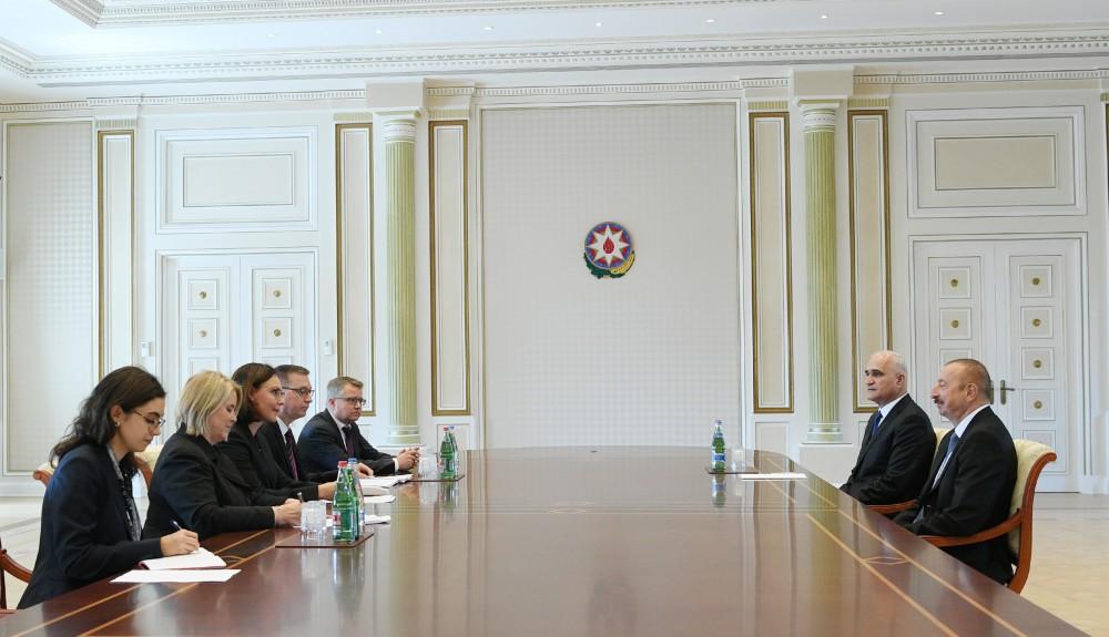 Baku, Azerbaijan, July 5 Trend: Azerbaijani President Ilham Aliyev has received a delegation led by Minister for Foreign Trade and Development of Finland Anne-Mari Virolainen. The Azerbaijani president said that the visit of Anne-Mari Virolainen to Azerbaijan is a good opportunity to discuss issues related to cooperation between the two countries in the economic sphere, including the increase in trade turnover, and stressed that there is great potential for this. Noting the importance of cooperation in the field of transport corridors, President Ilham Aliyev noted that Azerbaijan is actively investing in the establishment of transport link between the neighboring and partner countries, and the country is becoming an important link in the major East-West and North-South transport corridors. The successful implementation of the North-South transport project has already begun, Ilham Aliyev said, adding that Azerbaijan is investing heavily in this sphere. The head of state also noted the importance of increasing activity in the business sphere in terms of expanding economic cooperation. Touching upon the work of several Finnish companies in Azerbaijan, President Ilham Aliyev said that the number of these companies can be increased. He added that the economic development of Azerbaijan, prospective plans, powerful economic structure provide Finnish companies, just like other foreign ones, with good opportunities for active work in the different spheres of Azerbaijan’s economy. In turn, Anne-Mari Virolainen conveyed the greetings of President of Finland Sauli Niinisto to Ilham Aliyev. The guest noted that in her country, the meeting of the presidents of Azerbaijan and Finland held in Davos is recalled with satisfaction. Noting that her visit program in Azerbaijan is very busy, Virolainen expressed hope that fruitful meetings will be held during the visit. She stressed that the beauty of Baku left great impression on the members of the delegation, adding that the historical architectural monuments in Azerbaijan are in perfect harmony with modern buildings. Virolainen said that the two countries have common history, and there are good opportunities for expanding cooperation between Azerbaijan and Finland. At the meeting, an exchange of views took place on the participation of Finnish companies in projects being implemented by the two countries related to energy, transit, vocational education, infrastructure, building up trade ties among businessmen, prospects for cooperation in investment, ecology and other spheres. Ilham Aliyev expressed gratitude for the greetings of President of Finland Sauli Niinisto and asked to convey his greetings to the president of Finland. Follow Trend on Telegram. Only most interesting and important news