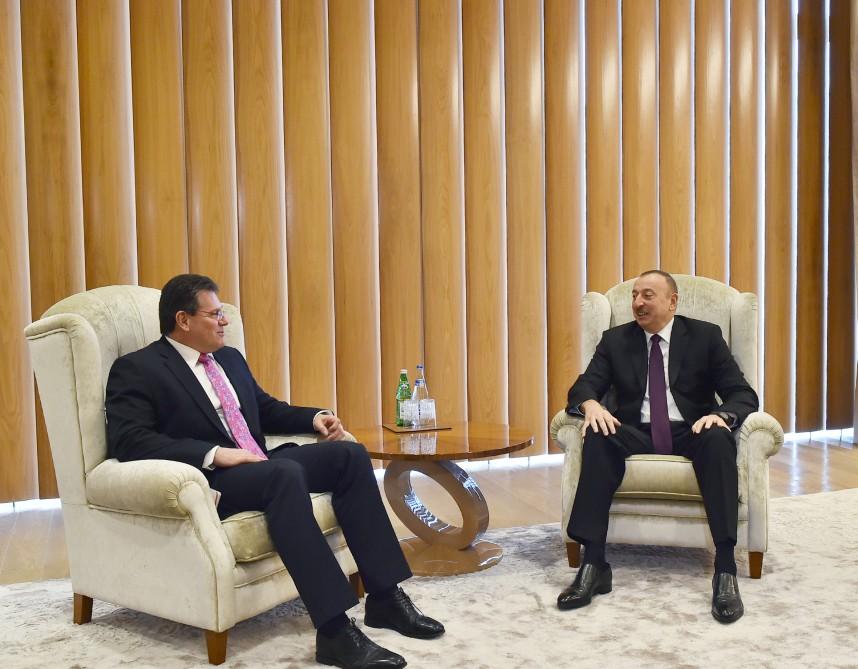 President of the Republic of Azerbaijan Ilham Aliyev met with European Commission Vice-President for Energy Union Maros Sefcovic Feb. 23.