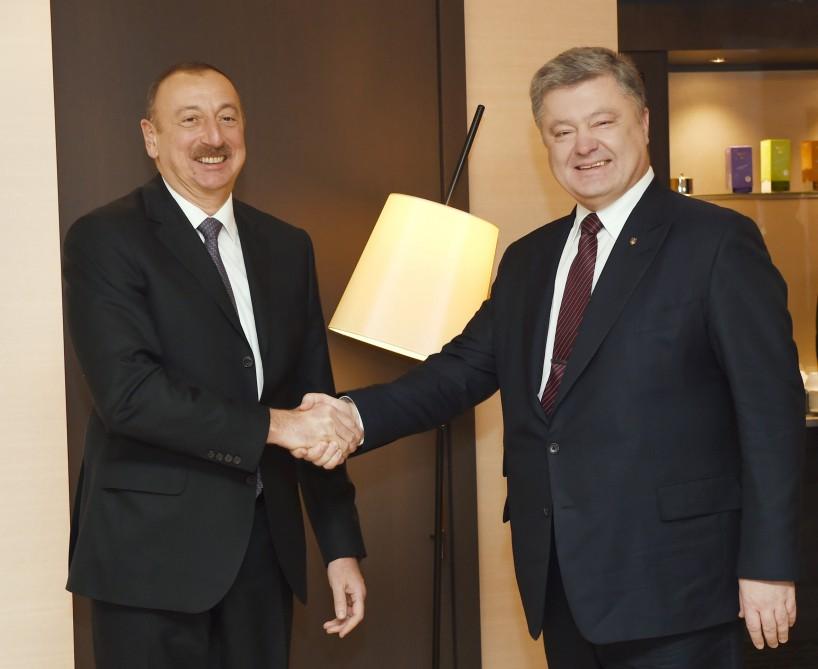 Baku, Azerbaijan, Jan. 18 Trend: President of the Republic of Azerbaijan Ilham Aliyev has met with Ukrainian President Petro Poroshenko in Davos. During the meeting, the sides expressed satisfaction with the development of relations between the two countries in political, economic and other fields. The importance of the visit of the Ukrainian President to Azerbaijan in terms of boosting relations were emphasized. Active cooperation of both countries in international organizations, as well as always support of each other`s sovereignty and territorial integrity was stressed. They exchanged views over the boosting cooperation in the fields of investment, energy, agriculture, infrastructure. During the conversation, issues related to the bilateral and mutual interest were discussed.