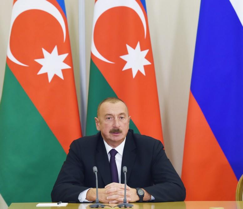 Baku, Azerbaijan, Sept. 3 Trend: The military products Azerbaijan purchased from Russia exceed $5 billion and tend to grow, Azerbaijani President Ilham Aliyev said. He was making press statement in Sochi Sept. 1 together with Russian President Vladimir Putin. “Vladimir Vladimirovich, first of all I would like to thank you for the invitation to visit Russia, for hospitality and for the warm welcome,” Ilham Aliyev said. “As you have mentioned, our meetings are of regular nature. We met three times in the last three months: in Moscow on the eve of the World Cup in June, in Kazakhstan in August and in Sochi today. I would like to use this opportunity to congratulate Russia again on successfully hosting this international event and the Russian team on brilliant performance at the World Cup.” “The regular contacts between the heads of state of our countries impart dynamism to our relations, the relations resting on a very sound basis,” the Azerbaijani president said. “The relations between Russia and Azerbaijan are those of strategic partners. They cover all spheres of our life, and during my visit today we have discussed many aspects of our bilateral relations and international issues in great detail. Vladimir Vladimirovich said this very thoroughly today.” “I would like to note that among the issues we have discussed, an important place is held by the issues of regional security, first of all the settlement of the Armenia-Azerbaijan Nagorno-Karabakh conflict,” Ilham Aliyev noted. “It has been ongoing for a very long time and has led to great suffering for the Azerbaijani people. The internationally recognized territories of Azerbaijan have been under Armenian occupation for many years. More than a million Azerbaijanis have become refugees and internally displaced persons as a result of this conflict. The soonest settlement of the conflict will allow our citizens the opportunity to return to their historical lands, and bring peace, stability and cooperation to our region.” “Russia as a co-chair of the OSCE Minsk Group dealing with the settlement of the conflict plays an important role in the settlement,” he said. “Russia is our neighbor, our historical partner and friend, and we expect that Russia's efforts towards resolving the conflict will continue.” “We have discussed the economic issues in great detail and are pleased to note the growth of trade and great prospects for the future,” Ilham Aliyev noted. “What has been discussed and agreed upon today, namely the roadmaps for various areas of economic cooperation, will enable us to further increase the already dynamic turnover between our countries. This year too, despite the rapid growth last year, the turnover has also grown. Russia for Azerbaijan is the number one partner regarding imports and is in the first place for Azerbaijani non-oil exports. In other words, this shows the scale and importance of cooperation between our countries.” “Many investment projects, as Vladimir Vladimirovich has said, are being implemented and have great prospects for the future,” the Azerbaijani president added. “In general, we expect increase in the trade and economic turnover, strengthening of integration ties and creation of even better prerequisites for cooperation between our companies.” “Of course, transportation projects play an important role in this. Russia and Azerbaijan are neighbors,” he said. “We are linked through railways, roads, the air communication is very active – both passenger and cargo. We thoroughly discussed further steps to create new transport opportunities for our countries, as well as for our neighbors." "Vladimir Vladimirovich has noted the importance of the North-South project. Azerbaijan, for its part, has already carried out all the important infrastructure projects in this direction in its territory. In comparison with last year, 100 times more cargo was transported through the North-South transport corridor this year. And this is only a beginning because this large-scale global project will encompass countries and continents. Thus, the transit opportunities of our countries will increase and thousands of jobs will be created,” Ilham Aliyev said. “Important documents in the field of cooperation in the oil and gas sector have been signed today,” Ilham Aliyev said. “This is a traditional sphere of our cooperation. There is very good potential and prospects. Vladimir Vladimirovich has pointed to the active participation of Russian banks in the implementation of many important transport, infrastructure and industrial projects in Azerbaijan. We welcome that.” “We have also discussed further cooperation in the military and technical field,” the Azerbaijani president noted. “It already has great traditions. The contracts implemented between Russia and Azerbaijan, namely the military products Azerbaijan has purchased from Russia, exceed $5 billion and tend to grow because Azerbaijan continues to modernize its armed forces, and Russia is the world's most important producer and supplier of military products to international markets.” “Cooperation in the humanitarian sphere holds a special place in our discussions,” he said. “Azerbaijan treats Russian culture, the Russian language and everything that has united our peoples for centuries with special care. There are more than 340 schools in Azerbaijan with teaching provided in the Russian language. There are two branches of leading Russian universities in Azerbaijan. We have discussed further steps to strengthen our cooperation in the humanitarian sphere, in the sphere of education, in the sphere of culture, and the documents that have been signed, including those in the sphere of sports, will bring our countries and peoples closer together.” “In other words, the relations between our countries are those of a full-fledged partnership, friendship and good-neighborliness. Such as they should be between goo