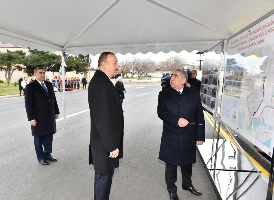 President of the Republic of Azerbaijan Ilham Aliyev has attended the opening of a 5-km long section of Zigh-Amirjan-Yeni Surakhani highway in Surakhani district, Baku, after renovation.