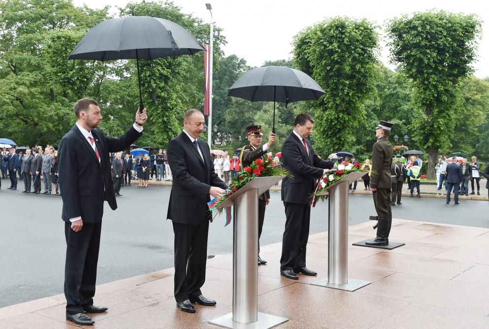 President of the Republic of Azerbaijan Ilham Aliyev and President of the Republic of Latvia Raimonds Vejonis have today visited the Freedom Monument in Riga.