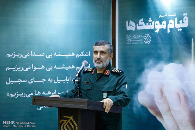 TEHRAN, Oct. 03 (MNA) – Commander of the Islamic Revolution Guards Corps Aerospace Force said Tue. that in the Monday IRGC attack on ISIL positions in eastern Syria, 40 terrorists, including a top commander, were killed. Speaking in Tehran on Tuesday afternoon, Brigadier General Amir Ali Hajizadeh said that IRGC Aerospace Force’s intelligence was accurate and for that they conducted a successful operation in Syria. He added that in the operation against the KDP camps in Kurdistan Region was thanks to the intelligence obtained from IRGC ground forces. With regard to the Monday IRGC missile and drone attacks on ISIL positions in eastern Syria, Hajizadeh said about 40 of the terrorists were killed, adding that their bodies are still trapped under debris, and further information will be disclosed to public at a later time. He added that a top commander responsible for their operation in Iraqi Mosul areas was among the killed. He also warned sponsors of anti-Iran terrorists, including Saudi Arabia, UAE and US, that the tolerance of Iranian officials is limited. He further stated that “Iran reacts to terrorists swiftly, but it is patient with governments and regimes.”