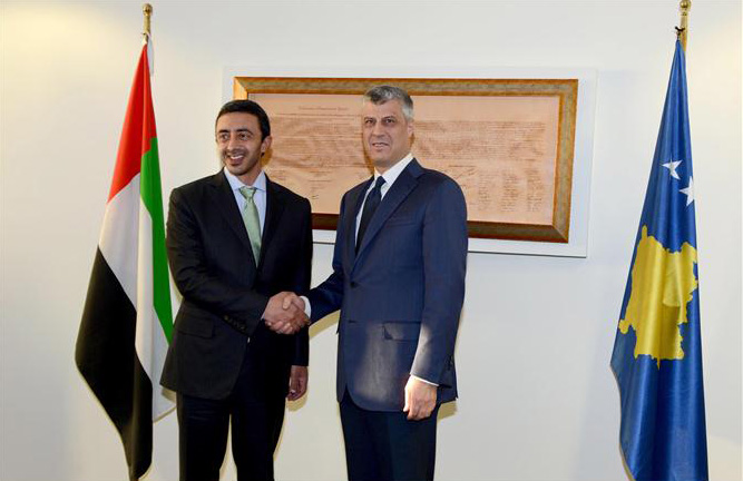 Afterwards, Sheikh Abdullah met also with Hashim Thaci, Prime Minister of Kosovo and conveyed to him the greetings of Vice President and Prime Minister and Ruler of Dubai His Highness Sheikh Mohammed bin Rashid Al Maktoum and His Highness General Sheikh Mohamed bin Zayed Al Nahyan, Crown Prince of Abu Dhabi and Deputy Supreme Commander of the UAE Armed Forces.
