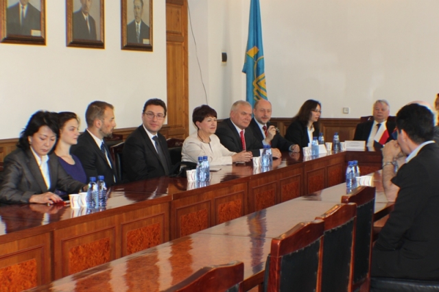 Ulaanbaatar /MONTSAME/ Visiting Marshal of the Senate of Poland Mr Bogdan Borusewicz met Tuesday the Polish language teachers and students of the Department of Slavic Studies at Mongolia's State University (MSU). Present at this meeting were also Mr Tadeush Homitsky, the Ambassador Extraordinary and Plenipotentiary of Poland to Mongolia, and others. Thanking the Marshal for visiting the university, the MSU director for training affairs B.Ochirkhuyag said that the Foreign Language School is one of the oldest schools at the MSU, some 1,400 students are studying at the school to learn 15 foreign languages. He hoped that the Mongolia-Poland long-year traditional cooperation will expand, and expressed a willingness to collaborate with Poland in the educational sector. In response, Mr Borusewicz said that Mongolia has become a good example of democracy, "so we always grateful to cooperate with Mongolia, I really hope that our cooperation will widen further." Mr Homitsky said that their side intends to grant summer vacation scholarship to the Mongolian students who study in Poland. Then the Polish delegation presented books and textbooks about Poland. The MSU began to teach Polish language since 1992, some 80 students have graduated from the Polish language class. As of today, 11 students are majoring in the Polish.