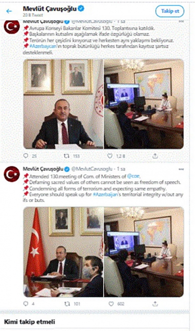 “Everyone should speak up for Azerbaijan’s territorial integrity without any ifs or buts. Condemning all forms of terrorism and expecting same empathy,” said Turkish Foreign Minister Mevlut Cavusoglu as he addressed the 130th meeting of the Committee of Ministers of the Council of Europe.