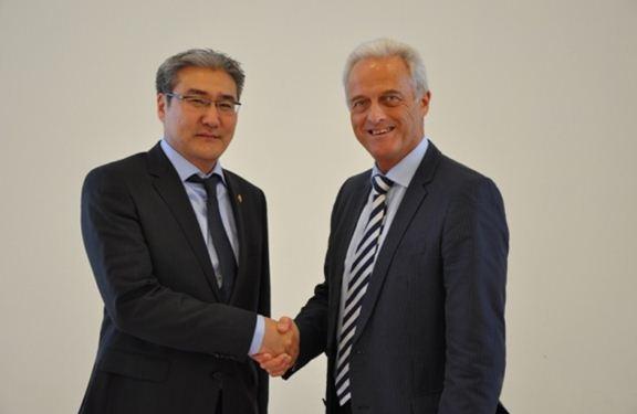Ulaanbaatar, Mongolia /MONTSAME/ A delegation led by A.Gansukh, the Minister of Road and Transportation, attended the “InnoTrans 2012” international exhibition of railway. It opened on September 18 in Berlin, Germany. Mr Gansukh has been invited by Mr Peter Ramsauer, Germany's Federal Minister of Transport, Building and Urban Affairs. Apart of taking part in the exhibition, Mr Gansukh has held meetings with the Minister Ramsauer, and Mr Bernhard Heitzer, the State Secretary at the Federal Ministry of Economics and Technology, to share views on the bilateral and multi-lateral cooperation. During the meeting, Mr Gansukh spoke about a structure of the new cabinet of Mongolia and the biggest projects in the infrastructure, particularly in the railway sector, to be implemented by the government. The German side expressed a readiness to assist Mongolia's railway sector and to establish some documents on training Mongolian staffers. Noting about a possibility to collaborate in introducing the European standards to Mongolia, the two sides agreed to talk this matter in near future. Moreover, the sides exchanged views on updating the cooperation memorandums. Within the exhibition, the Minister also met Mr R. Grube, CEO of Deutsche Bahn AG, and Mr Yakunin, the president of the state-run Russian Railways company. The Mongolian Minister suggested that the Russian side cooperate in renovating the Ulaanbaatar railway and in constructing new railways in Mongolia. Mr. Grube has been invited to visit Mongolia. B.Khuder