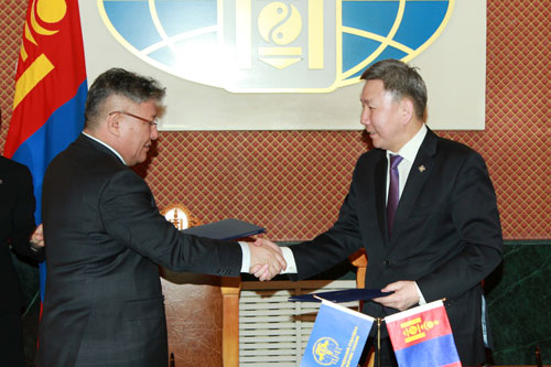 Ulaanbaatar /MONTSAME/ The Foreign Minister L.Bold and S.Demberel, the director of the Mongolian Chamber of Commerce and Industry /MNCCI/, signed a memorandum of cooperation on March 6. The aims are thus pursued to enhance the foreign ties with economic content, to increase competitive capacities of foreign relations' economic relations through boosting state-private sector ties, make foreign trade become efficient, and to increase foreign investments. Other goals have been put to cooperate in advertising Mongolia and the Mongolian products throughout the world and to create the Mongolian brand products. Ch.Enkhtuya
