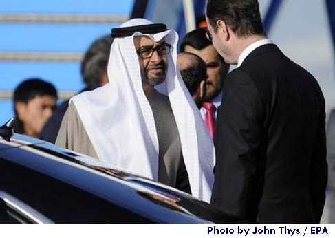 Sheikh Mohamed is accompanied by H.H. Sheikh Abdullah bin Zayed Al Nahyan, Foreign Minister, Khaldoon Khalifa Al Mubarak, Chairman of the Executive Affairs Authority, Yousif Mana Al Otaiba, UAE Ambassador to the United States and Mohamed Mubarak Al Mazrouei, Under Secretary of the Abu Dhabi Crown Prince's Court.