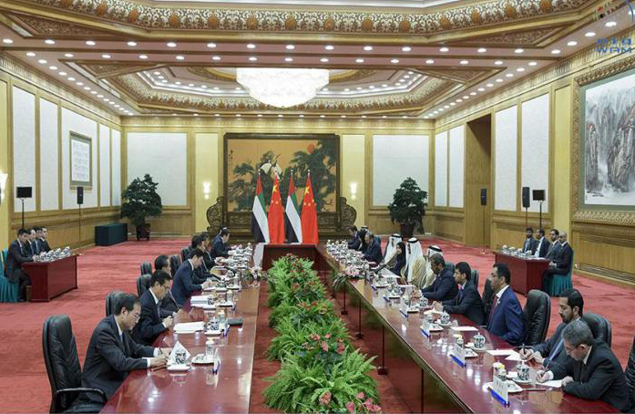 Sheikh Mohamed reiterated that the UAE, with its strategic location, will help to develop the stature of China to become an international trade hub that connects the East with West, as a result of its attractive environment for investment and free trade, stressing that the UAE takes note in China's "One Belt, One Road," a strategy which offers unprecedented opportunities to enhance the economic development across the Middle East.