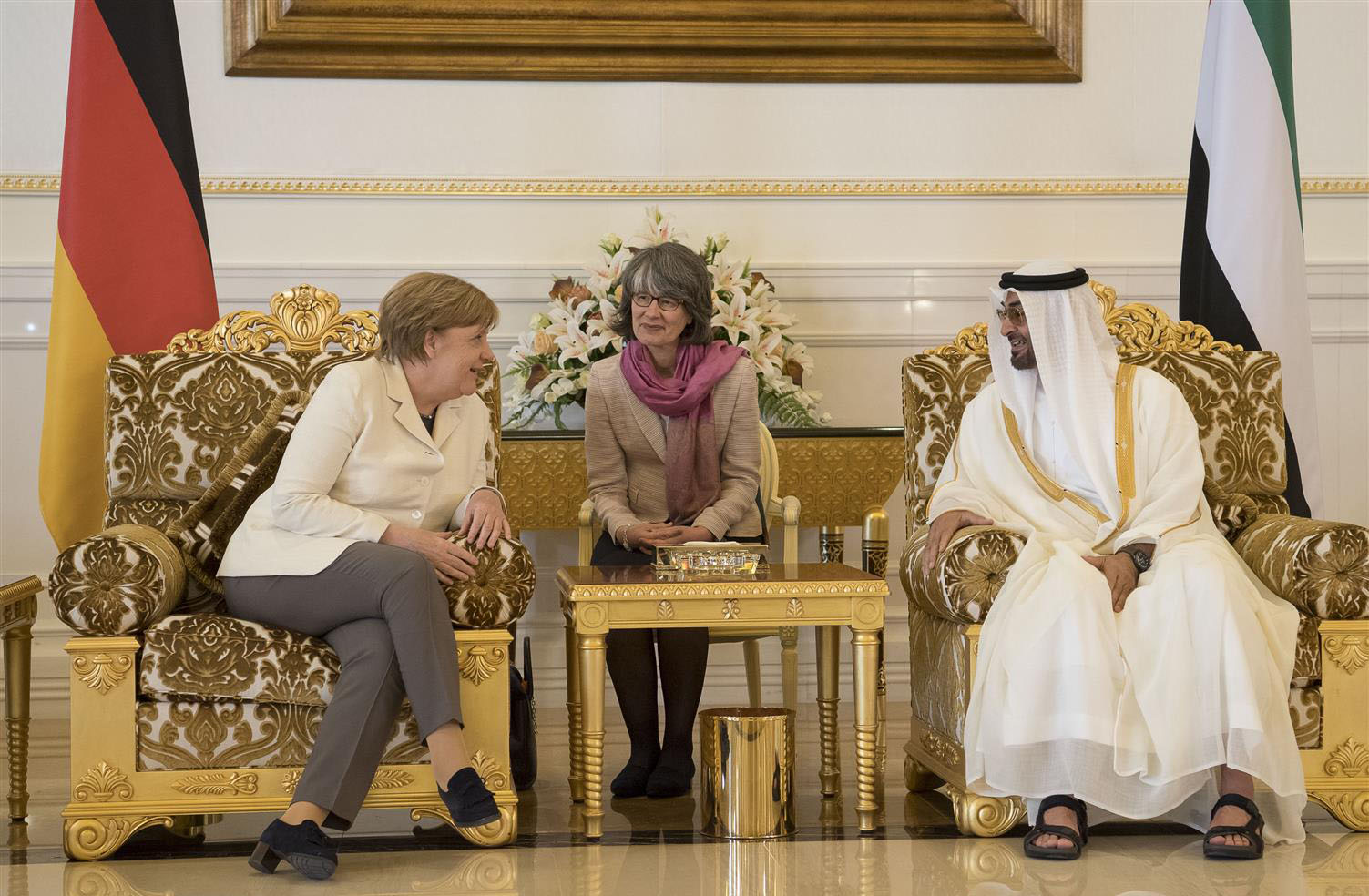 ABU DHABI, 2nd May, 2017 (WAM) -- His Highness Sheikh Mohamed bin Zayed Al Nahyan, Crown Prince of Abu Dhabi and Deputy Supreme Commander of the UAE Armed Forces, and Angela Merkel, Chancellor of the Federal Republic of Germany, discussed the promotion of bilateral ties between the two countries, as well as regional and international issues of mutual interest during the talks held here on Monday. His Highness Sheikh Mohamed bin Zayed welcomed Chancellor Merkel's visit to the UAE, noting that this visit comes within the framework of strong friendship between the people of both countries. They reviewed during the meeting attended by H.H. Sheikh Tahnoun bin Zayed Al Nahyan, National Security Adviser, the bilateral relations covering political, economic and development areas, as well as current partnerships between both countries and the ways to strengthen them. The two parties addressed the latest regional developments regarding Syria, Libya and Yemen, and the efforts of both countries to combat extremist and terrorist groups, and their mutual co-ordination to support the stability and security in the region. Sheikh Mohamed bin Zayed briefed Chancellor Merkel about the UAE’s vision of a safe, stable and prosperous region. They discussed developments in the international system and their implications, as well as the need for communication and dialogue among major international players to agree on a positive understanding to support global peace and stability. The Crown Prince of Abu Dhabi stressed that the UAE, led President His Highness Sheikh Khalifa bin Zayed Al Nahyan, attaches great importance to its relationship with the Federal Republic of Germany and "is keen to develop and promote this relationship in all areas in the best interest of both countries and their people, while supporting mutual efforts to establish an efficient UAE-German stance to address regional and international instability." He also called for greater German participation to support stability and development due to the global influence of Germany and Chancellor Merkel, as well as her influential opinions and her wide knowledge of regional and global matters. "The UAE-German relations are well established and based on a close partnership that reflects the belief of both countries about their mutual importance, and the need to provide institutional frameworks for consultation, dialogue, understanding and joint action to develop ways of enlarging the scope of their mutual interests, while investing in potential of co-operation and achieving greater political, economic, cultural and security understanding," Sheikh Mohamed said. The UAE is the first trade partner of Germany in the Gulf and Arab region. The volume of trade exchange between the two countries stood at US$16 billion, and was increasing due to economic and trade co-operation that provide great potential and incentives, especially in technology, space, renewable energy, tourism and other areas. The meeting was attended by Dr. Anwar bin Mohammed Gargash, Minister of State for Foreign Affairs; Ali bin Hammad Al Shamsi, Deputy Secretary-General of the Supreme National Security Council; Khaldoon Khalifa Al Mubarak, Chairman of the Executive Affairs Authority; Ali Abdullah Al Ahmad, UAE Ambassador to the Federal Republic of Germany; Mohamed Mubarak Al Mazrouei, Under-Secretary at the Crown Prince Court of the Abu Dhabi, and the accompanying delegation to Chancellor Merkel. http://wam.ae/en/details/1395302611544