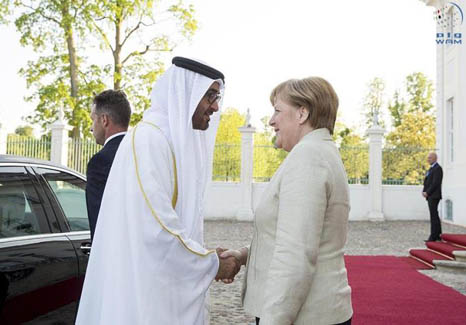 BERLIN, 10th May, 2016 (WAM) - His Highness Sheikh Mohamed bin Zayed Al Nahyan, Crown Prince of Abu Dhabi and Deputy Supreme Commander of the UAE Armed Forces, has discussed with German Chancellor Angela Merkel ways of enhancing bilateral strategic ties and a variety of regional and international issues of mutual concern.