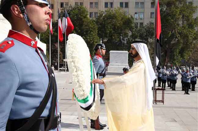 Santiago: Vice President and Prime Minister and Ruler of Dubai His Highness Sheikh Mohammed bin Rashid Al Maktoum, has laid a floral wreath at the memorial tomb of Salvador Allende, the late president of Chile who was killed on 11 September 1973 in a military coup which toppled down his government.