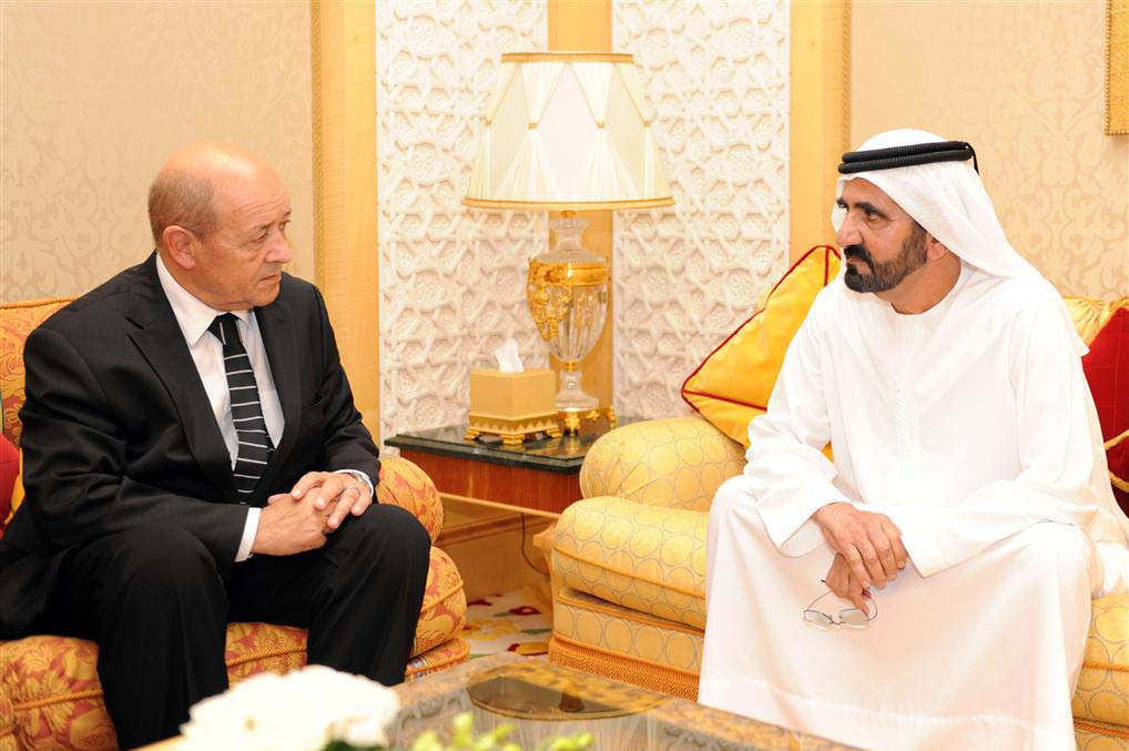 Dubai, Oct 22, 2012 (WAM) - UAE Vice President and Prime Minister and Ruler of Dubai His Highness Sheikh Mohammed bin Rashid Al Maktoum received on Sunday at his Zabeel Palace in Dubai, French Defence Minister Jean-Yves Le Drian and the delegation accompanying him.