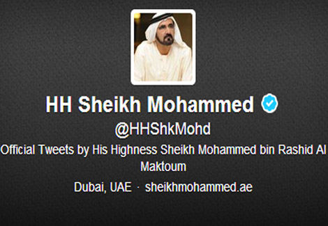 Dubai, Aug 14, 2013 (WAM) Vice President and Prime Minister and Ruler of Dubai His Highness Sheikh Mohammed bin Rashid Al Maktoum is among the most sought-after figures on the Twitter, after his page, on the social networking website succeeded attracting two million followers. His Highness Sheikh Mohammed bin Rashid Al Maktoum, on this occasion, expressed his thanks and gratitude to each of his followers via his "Twitter" page. This outstanding success in attracting the attention of a large number of followers is a result of His Highness' page diversity and richness of themes and issues. Sheikh Mohammed's page enjoys great and wide follow-up on social networking websites for his continuous keenness to communicate on many occasions in addition to his eagerness to express his opinion and comment on many of the regional and global issues and topics. His Highness Sheikh Mohammed bin Rashid Al Maktoum's page on twitter has seen sequential increase with the addition of 90 thousand fresh followers each month. Arabs account for the largest number of the followers of Sheikh Mohammed bin Rashid's twitter account, with 43% of them coming from the UAE alone, and rest of followers from Saudi Arabia, Kuwait, Bahrain and Egypt. The large number represent a large variety of individual and corporate followers of different nationalities from Arab countries, Latin America, Africa and Asia, India and Japan in particular. A close look at the account, the nature of the variety of topics and the interaction of followers, reveals that it represents a record of his personal characteristics that highlights his thought, philosophy and openness to the world's different cultures. H.H Sheikh Mohammed bin Rashid Al Maktoum has been among the first Arab leaders to show keen interest in communicating with the different segments of the society via the most advanced and influential means of networking and communication, based on his belief in their effective role in, and contribution to effective communication with the younger generation and to the consideration of their ideas and perception of life in different spheres, as well as in the fact that the youth are the real wealth of the nation. – Emirates News Agency, WAM