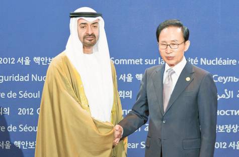During the meeting attended by H. H. Sheikh Abdullah bin Zayed Al Nahyan, Foreign Minister, the Abu Dhabi Crown Prince conveyed the regards of President His Highness Sheikh Khalifa bin Zayed Al Nahyan to Lee Myung-bak, and prosperity wishes to the Korean government and people. Sheikh Mohammed thanked the Korean President for the invitation to attend the Nuclear Security Summit 2012 in Seoul.
