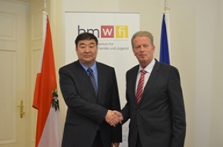 Ulaanbaatar /MONTSAME/ On a working visit to the Republic of Austria, the Ministry of Energy M.Sonompil held Wednesday a meeting with Mr Reinhold Mitterlehner, the Minister for Economy, Family and Youth. The two Ministers discussed a cooperation in the economic and energy sectors, especially in the renewable energy sector. Speaking about economic situation in his country, Mr Mitterlehner expressed a readiness to expand the bilateral friendly relations with economics and to co-implement joint projects and programmes. The Mongolian Minister noted that he is a head of the Mongolia-Austria intergovernmental joint commission, and said Mongolia wants to realize a decision made by the Austrian government on granting a soft loan of EUR 40 million to Mongolia at the fourth intergovernmental commission meeting held in 2010. "By the memorandum on the soft loan, it has been planned to finance projects and measures on health, energy and infrastructure," Mr Sonompil said. Then he proposed to implement a project on erecting an electricity power station which processes garbage, to exploit progressive technologies of Austria. The Austrian Minister supported this proposals and emphasized that the sides should focus ob beneficial exploitation of the soft loan. The Austrian companies are interested in a project on constructing a hydro power station, he added. After the meeting the Ministers signed a memorandum on developing the bilateral cooperation in energy sector, namely in augmenting resources of renewable energy and raising profit of the energy. The memorandum also reflects a matter on attracting scientific institutions of the two countries to works in environment protection, sustainable development and new technologies introduction. The Minister's working visit is continuing. Mr Sonompil plans to meet with Mr Wolfgang Katzian, a member of Austrian parliament in charge of energy affairs, and to get acquainted with environmentally-friendly energy station and a hydro power station. The 50th anniversary of the Mongolia-Austria diplomatic relations is celebrated this year, and the fifth meeting of the bilateral intergovernmental commission meeting will run July 8-9 in Ulaanbaatar.