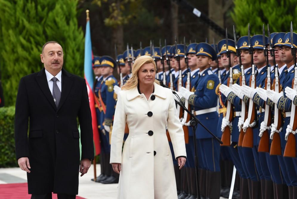 An official welcoming ceremony was held for President of the Republic of Croatia Kolinda Grabar-Kitarovic October 24, who is on an official visit in the Republic of Azerbaijan.