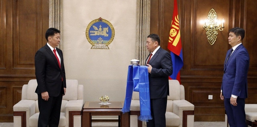 Ulaanbaatar /MONTSAME/ Speaker of Parliament M.Enkhbold received Prime Minister U.Khurelsukh on October 4 to congratulate on his appointment earlier on the day. “Parliament members have shown 100 per cent support to the appointment of the 30th Prime Minister,” noted the Speaker, offering personal congratulations. Speaker M.Enkhbold wished all the best in his term, expressing confidence that the newly appointed Prime Minister will uphold justice and unity. Ts.Tsolmon, Secretary-General of Parliamentary Office was present at the meeting. Kh.Aminaa