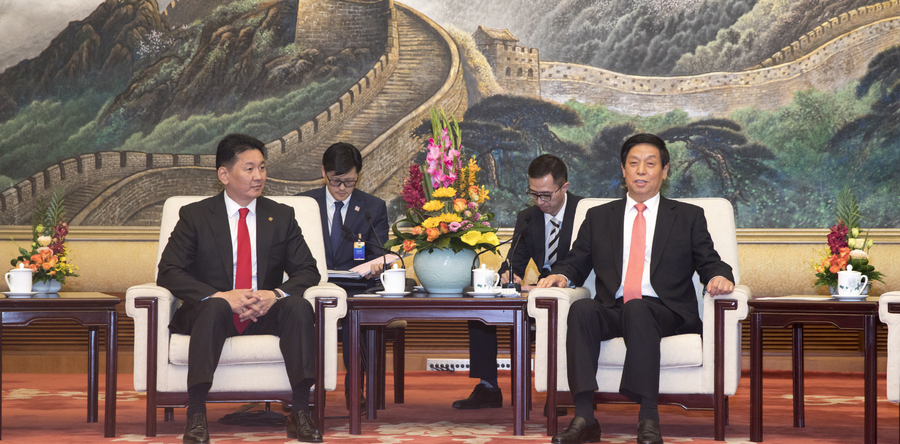 Ulaanbaatar/MONTSAME/ Prime Minister U.Khurelsukh paid a courtesy call on Li Zhanshu, chairman of Standing Committee of the National People's Congress, on April 9 and exchanged views on Mongolia-China cooperation.
