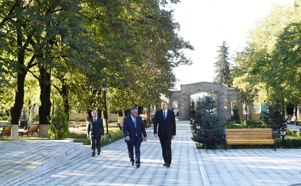 Head of Zagatala District Executive Authority Mubariz Ahmadzade informed President Aliyev about the landscaping work carried out in the Heydar Aliyev Park.