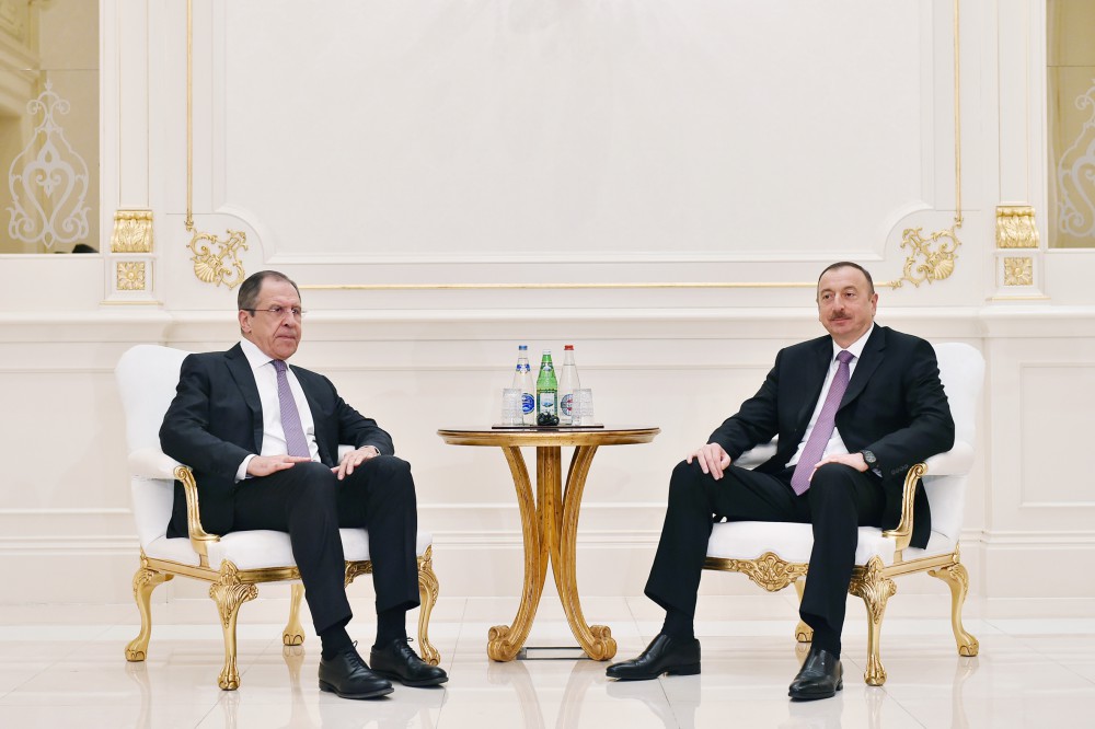 Baku, Azerbaijan, Apr. 7 Trend: Azerbaijani President Ilham Aliyev met with Russian Foreign Minister Sergey Lavrov. Welcoming the high-ranking Russian official, President Aliyev said that on Apr.7, Baku hosts a meeting of foreign ministers of Russia, Iran, Azerbaijan. "We are very pleased that this meeting, the first such meeting is taking place in our country," he said. "I think this is the beginning of a very serious process of regional cooperation between our countries." Azerbaijan is the only country in the world, which borders both with Russia and Iran, said the president, adding that such a geographical location, as well as the history of relations between the peoples of the three countries and the current cooperation Azerbaijan and Russia, of course, makes it necessary to intensify cooperation in a multilateral format. President Ilham Aliyev said that issues related to the fight against international terrorism, drug trafficking, political engagement, transportation issues, energy, and others are being discussed at the meeting in a spirit of mutual understanding and constructivism. The president further said that Lavrov's visit is a good opportunity to discuss bilateral issues. "We are very pleased to see how relations are built between our countries," Ilham Aliyev said, adding that they include high-level relations of strategic partnership, which cover almost all spheres. President Aliyev said that Russia and Azerbaijan are two friends, two neighbors. "We value these relations and try to strengthen and develop them," the president said. "This concerns political, humanitarian cooperation, economy, energy, and, of course, the settlement of the Armenian-Azerbaijani Nagorno-Karabakh conflict." President Aliyev said that as everyone knows, the situation has recently aggravated on the line of contact of Azerbaijani and Armenian troops, which has led to human losses. "Of course, this is a matter of concern in the world and in the region," the president said. The president added that the recent situation on the line of contact also causes public concern. "In this case, Russia once again took the initiative," the president said. "The ceasefire agreement was reached with the Russian side's mediation." "We believe that this is only way to prevent an escalation in the region," the president said. "The ceasefire regime was observed, and unfortunately, the Armenian side violated it again." "We are committed to the continuation of the negotiation process," Ilham Aliyev said. The president said that he received the OSCE Minsk Group co-chairmen, ambassadors of the OSCE Minsk Group. "I have also told the co-chairmen, ambassadors and I want to tell the press that Azerbaijan is committed to the negotiation process," the president said. "We want to settle this conflict peacefully, on the basis of norms and principles of the international law." "I think that all these years - more than 20 years that have passed since the ceasefire testify to the fact that we are committed to the political settlement," the president said. "Of course, we will also discuss all these questions with you," the president said. "I am sure that your visit will be another important step in strengthening our relations."