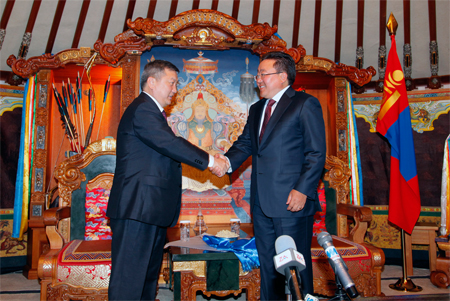 Ulaanbaatar, Mongolia /MONTSAME/ The President Ts.Elbegdorj received on Tuesday Z.Enkhbold and congratulated him on being elected the Speaker of the State Great Khural.