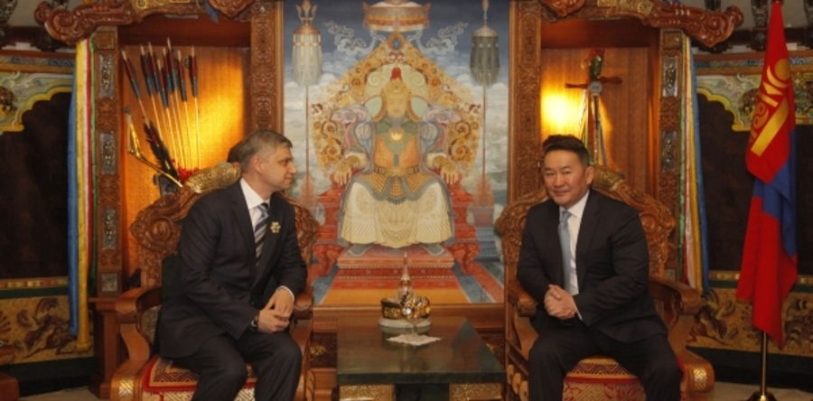 Ulaanbaatar/MONTSAME/ The President of Russian Railways JSC, Oleg Belozerov paid a courtesy call on the President of Mongolia, Khaltmaagiin Battulga at the State House on February 2. Oleg Valentinovich Belozerov, who was paying a short visit to Mongolia, has been taking active part in forwarding bilateral cooperation in railways sector since his appointment to the position of the president of Russian Railways JSC. At the meeting, Oleg Belozerov expressed gratitude to the Mongolian President for his time. He said Russian Railways has been doing a job, but Ulaanbaatar Railway a better job. He noted the current railway development can be accelerated, and asked President Battulga to attach a special importance to the issue. In response, President Kh.Battulga mentioned railways development is of great significance in Mongolia’s economic growth, and proposed to forward the dialogues and negotiations on renovations at the Ulaanbaatar Railway JSC. The sides further discussed about possibilities of modernization at Ulaanbaatar Railway. Source: President.mn