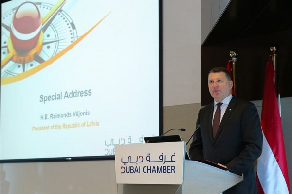 Addressing the UAE - Latvia Business Forum, organised by Dubai Chamber of Commerce and Industry, DCCI, on the sidelines of his visit to the country, President Vejonis , added his country "is a portal for Emirati traders and investors wishing to enter into northern and central Europe's most promising market."