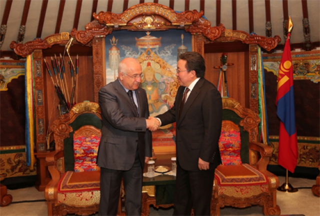 Ulaanbaatar /MONTSAME/ The President of Mongolia Ts.Elbegdorj Tuesday received visiting Mr Cemil Cicek, the Chairman of the National Assembly of Turkey. Mentioning that the Mongolia-Turkey relations have been developing, the President said Mongolia wants to expand the ties with Turkey, considering it as one of our "Third Neighbous". Mr Cicek conveyed to the leader of Mongolia greetings from Turkey’s President Abdullah Gul, noted about the 45th anniversary of the diplomatic relations and thanked Mongolia for attaching a great importance to the ties with Turkey, adding that our countries have ancient cultural traditions. Some 100 contracts and agreements established between our countries, represent a high development of the bilateral relations, he went on. Turkey will focus on expanding of the economic relations, "we are ready to collaborate in the air transportation, infrastructure and energy sectors, to continue a programme on training Mongolian students in Turkey, and to share experiences in development matters", he said. Mr Elbegdorj said he is satisfied with a frequency of the political high-level ties between the countries, "and I always respect our ancient historical ties". He also noted that the bilateral humanitarian cooperation, especially in training Mongolian students in Turkey and a cooperation between defense and law enforcement bodies, has been running successfully. The President touched upon an issue of taking a loan from Turkey for the construction sector, and stressed that the current visit will forward the bilateral relations. He asked Turkish Speaker to pass his warm greetings to Turkey leader.