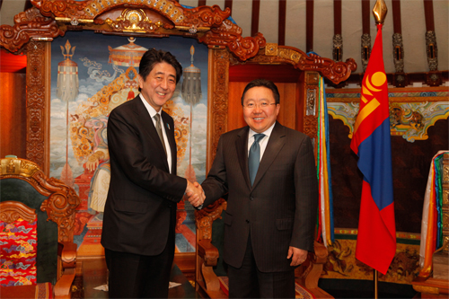 The leader of Mongolia expressed a gratitude to Mr Abe for paying the official visit and said it shows an importance the Japanese people and government attach to the Japan-Mongolia relationship.
