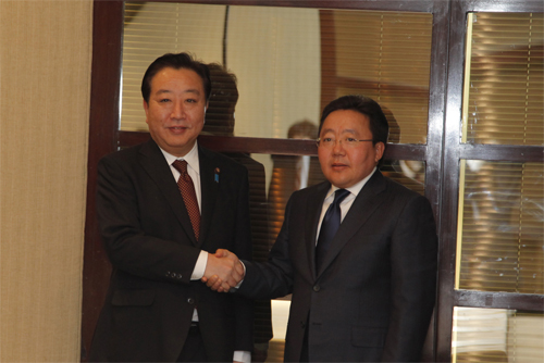 In response, Mr Noda congratulated the President on forming the new cabinet and parliament after successful parliamentary electiona, and wished Mongolia big successes. He noted that a speech the leader of Mongolia had delivered at Japan's parliament has brought a big achievement in the Mongolia-Japan relations.