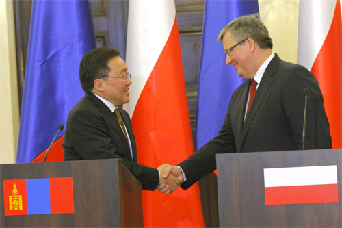 The President of Poland Mr Bronislaw Komorowski welcomed Mr Elbegdorj on the square of the Presidential House with a Guard of honor lined up and the national anthems of the two countries played. After this the State Heads held an individual meeting.